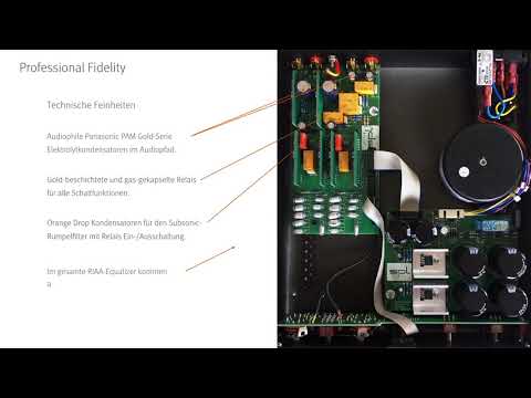 | Ausstattung | Impedanzen (schaltbar) für MC: 100, 220, 470, 2,2k, 4,7k, und 10 kOhm, Kapazitäten (schaltbar) für MM: Off, 150 pF, 220 pF und 330 pF |